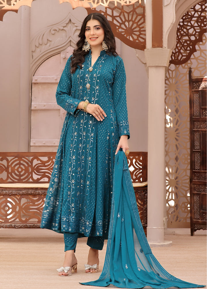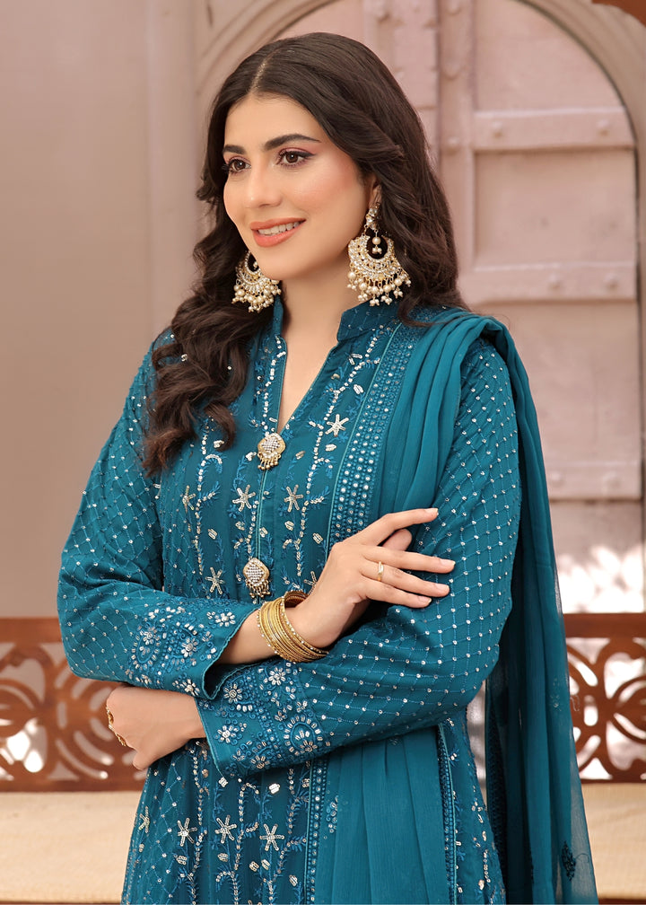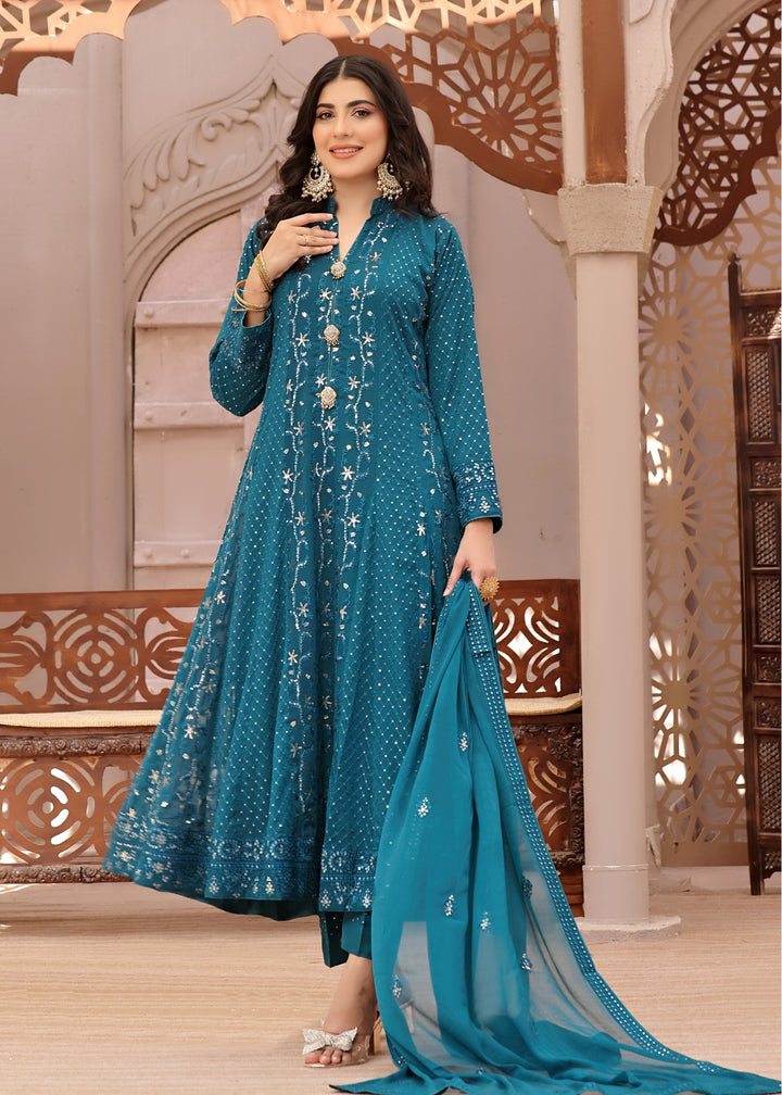 Additional Description: Introducing our Premium “BAHAR”, a perfect blend of traditional elegance and modern style. Designed to enhance your grace on any occasion, this attire embodies the richness of Eastern wear. Elevate your wardrobe with our traditional Roshni, which tells a story of elegance, tradition, and artistry.