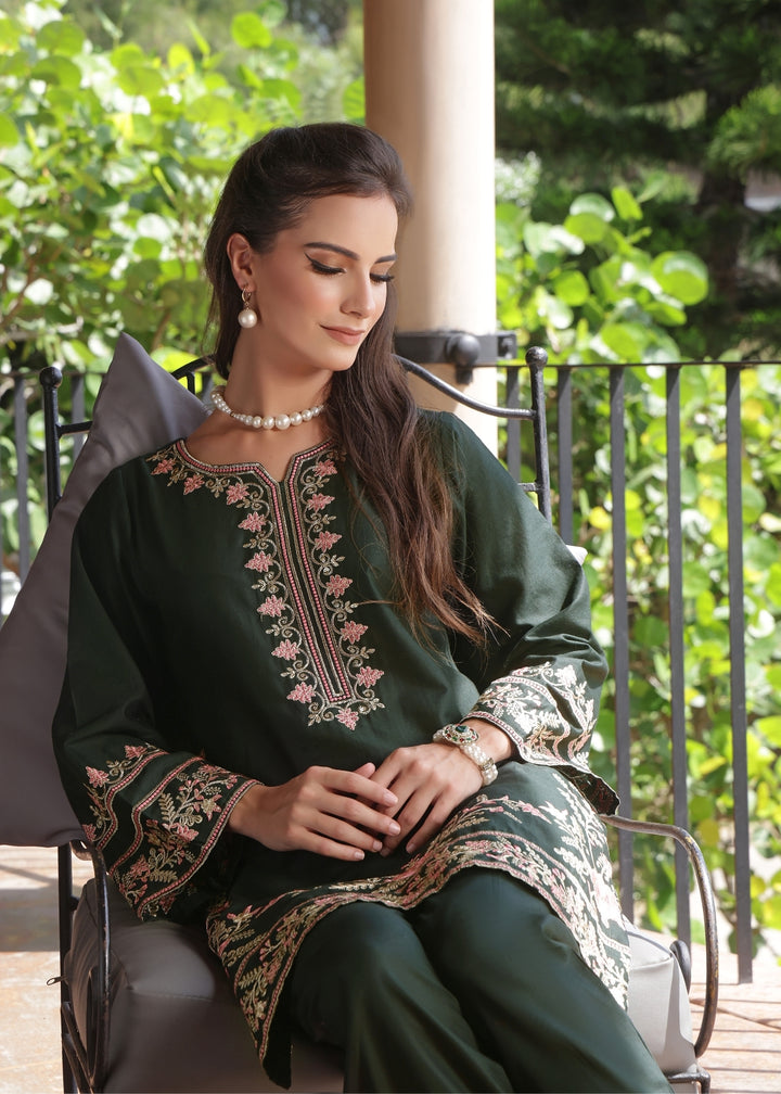Gul e Rana - Bottle green - 2 pieces - Cotton
