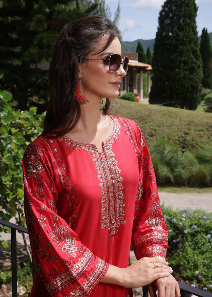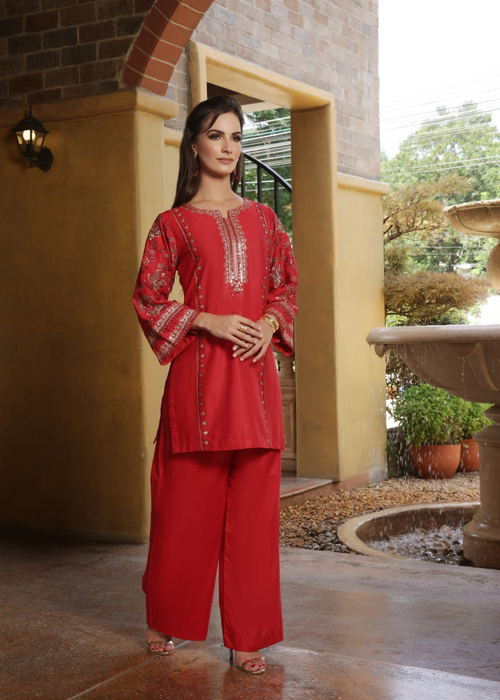 Gul-e-Rana is a graceful 2-piece stitched lawn cotton outfit designed in a rich dark hue, perfect for making a statement in every season. The short shirt comes adorned with beautifully heavy embroidered sleeves, paired elegantly with a stylish plazzo for a chic yet traditional appeal. Crafted for comfort and charm, this ensemble blends timeless elegance with modern sophistication — a versatile pick for both casual gatherings and semi-formal wear.