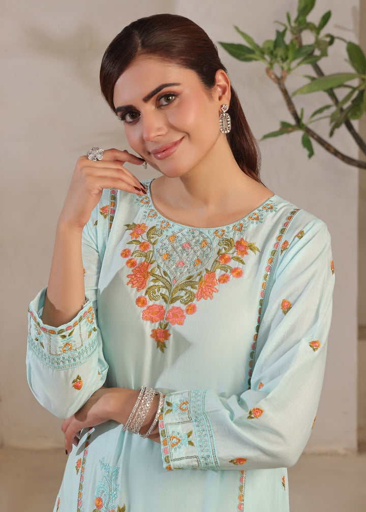 Kali is where delicate embroidery meets summer ease. This 2-piece ensemble includes a kurti with a gorgeous embroidered neckline and a beautifully detailed organza border on the daman, adding a soft festive touch to your everyday wardrobe. Made from premium lawn cotton and paired with a straight trouser, this outfit is perfect for women who love to keep things elegant yet easy. Its decent color palette gives a fresh, calming vibe — ideal for warm days, regular wear, and intimate occasions.
